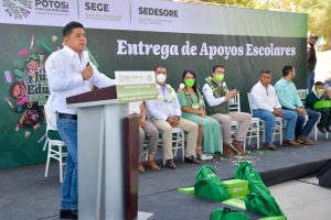 Mediante la entrega de los paquetes escolares, se refuerza la estrategia integral de seguridad al fomentar el esfuerzo y dedicación de los estudiantes potosinos inscritos en instituciones públicas de educación básica, para que permanezcan y continúen con su preparación académica y a la vez se alejen de problemas sociales como la delincuencia y adicciones.