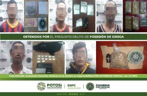 S.L.P.- Derivado de los operativos de seguridad llevados a cabo por policías de la Guardia Civil Estatal (GCE) para inhibir la comisión de hechos delictivos en la Entidad, fueron detenidas 9 personas por el presunto delito de posesión de droga y se aseguraron 74 dosis de enervantes.