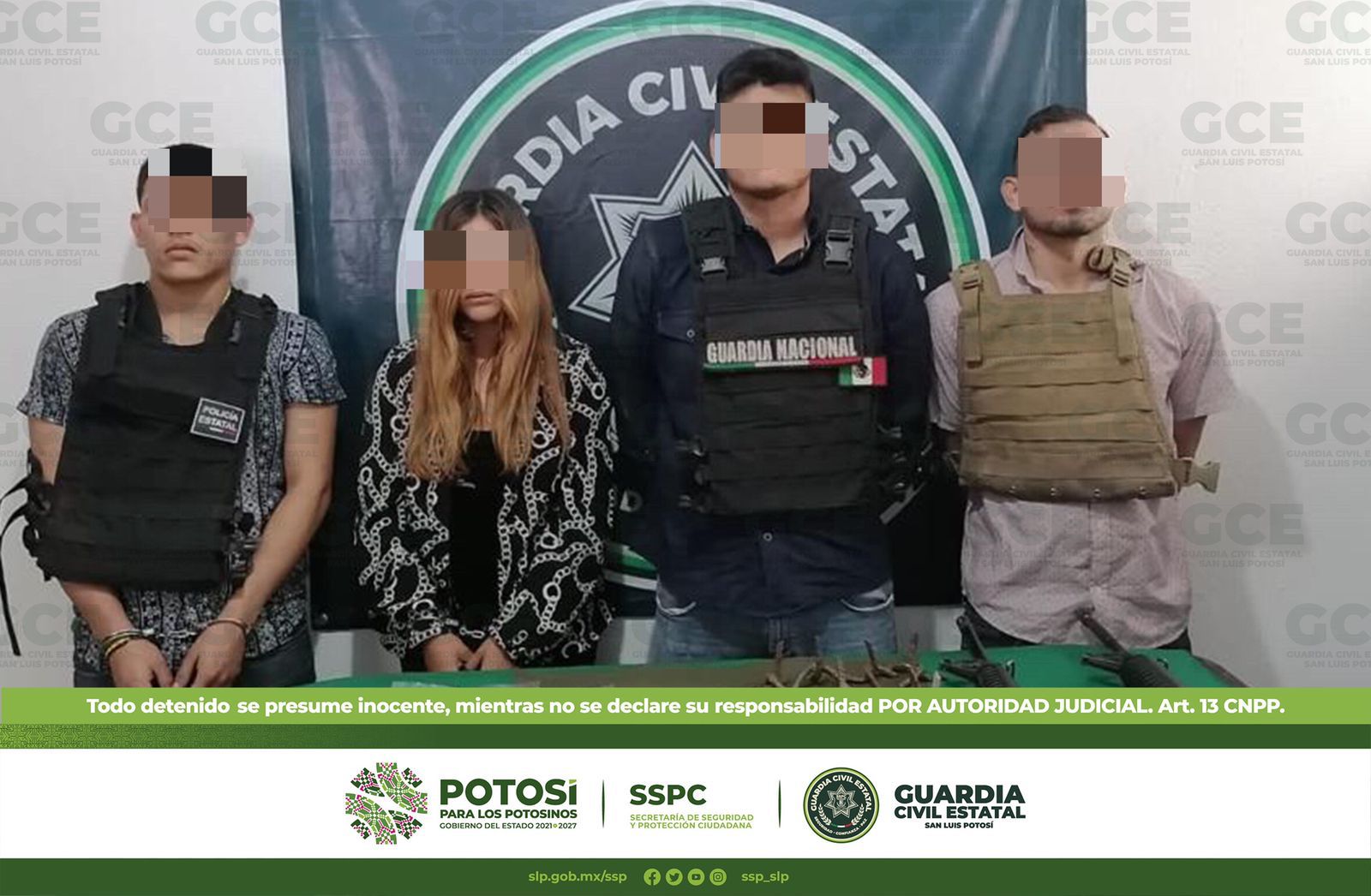 Tras una ligera persecución finalmente los presuntos delincuentes son sometidos; tres hombres originarios de Tamaulipas y una mujer originaria de Rascón SLP presumiblemente traían lo siguiente: