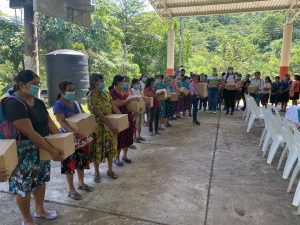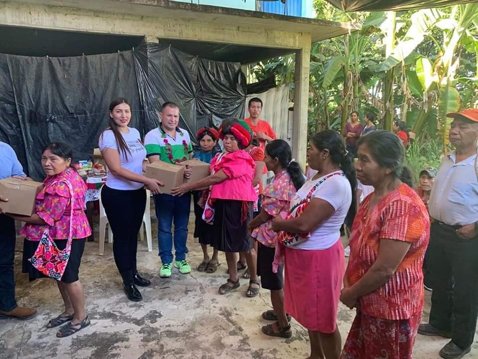 En dichas comunidades hizo entrega de apoyos alimentarios y estableció el compromiso de visitar una vez al mes este bello municipio.