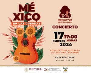 MINERAL DEL MONTE. – Este sábado 17 de febrero, el Centro Cultural Regional de Real del Monte recibirá a jóvenes guitarristas hidalguenses para llevar a cabo el concierto “México en las Cuerdas”, en punto de las 17:00 horas.