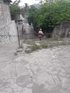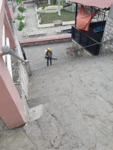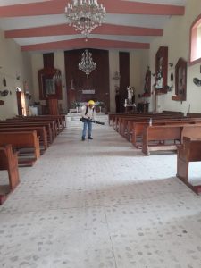 San Martín Chalchicuautla. – Durante la mañana de éste Miércoles 22 de Abril la dirección de Pc Municipal y Abate realizaron desinfección en la Parroquia San Martín Obispo y teatro del pueblo Justo Orta Bautista para evitar la propagación de virus y bacterias.