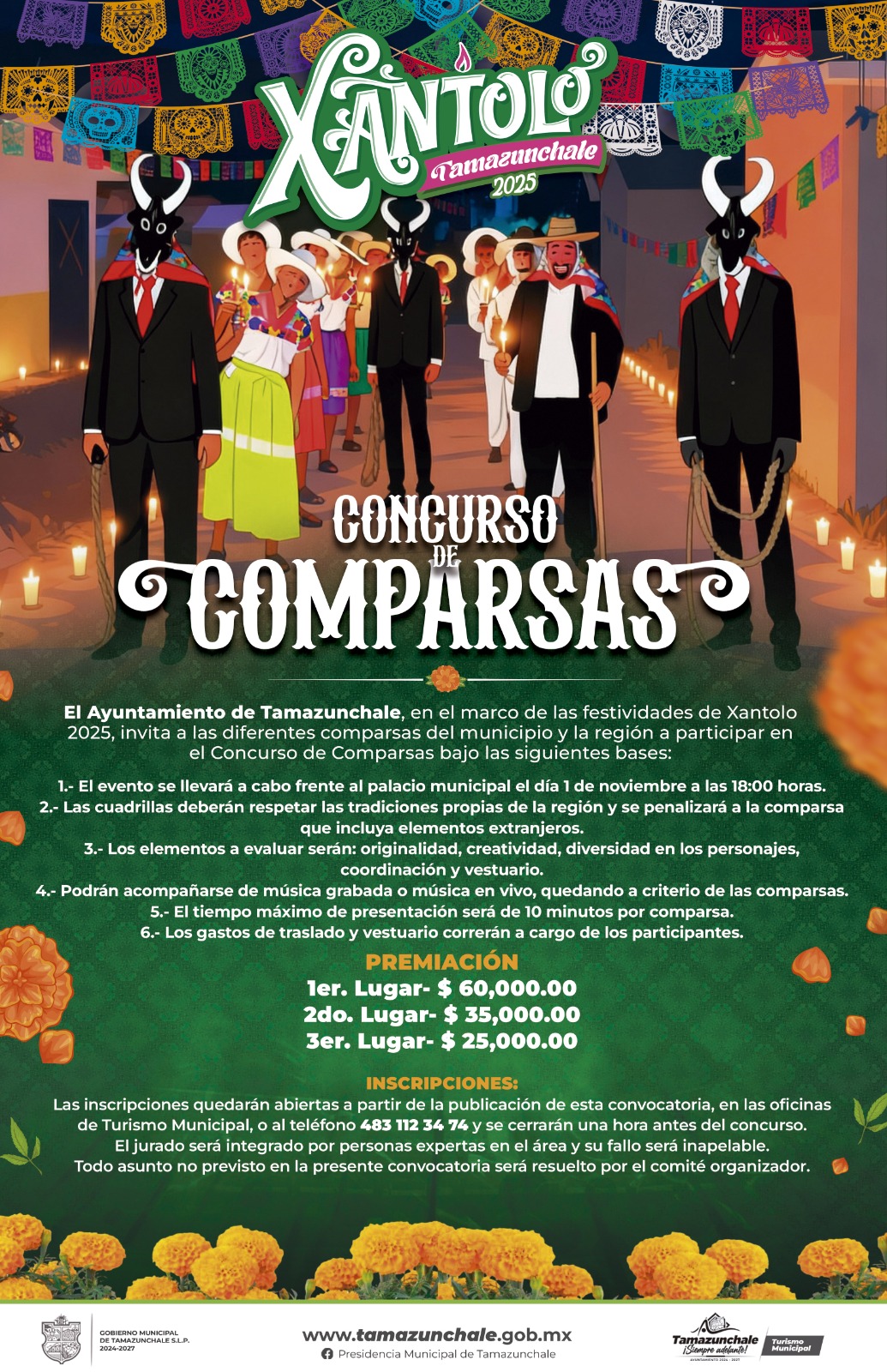 El Gobierno Municipal de Tamazunchale que preside Adelaido Cabañas Hernández, extiende la invitación a todas las comparsas y grupos de disfrazados del municipio y la región para que participen en el GRAN CONCURSO DE COMPARSAS.