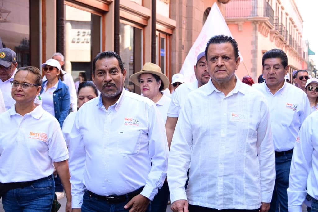 “Hoy cerca de 30 mil trabajadores demandamos sobre todo las becas a los hijos de los maestros, el bono de calidad de vida para los maestros jubilados, es una demanda histórica de cerca de 900 millones de pesos”.
