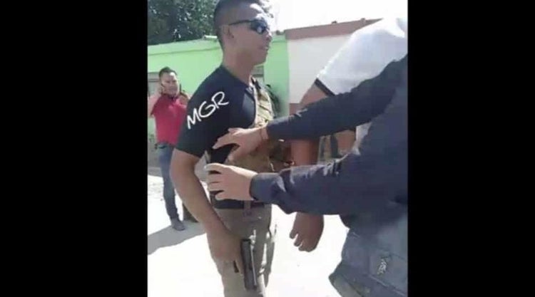 Se trata de un elemento de la Comisión Estatal de Seguridad Pública (CES) de Morelos, quien comenzó a amedrentar a los asistentes con su arma.
