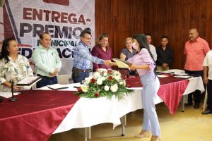 Posterior al acto protocolario de reconocimiento se dio paso a la entrega del Premio Municipal de Educación 2022 para los maestros acreedores en los diferentes niveles educativos.