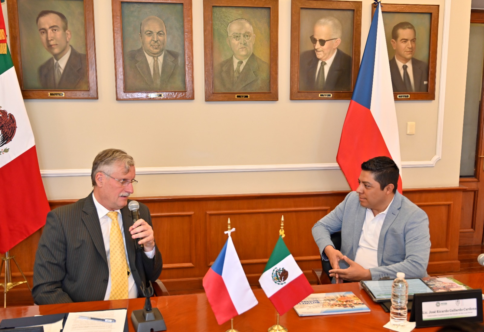 Durante su visita a San Luis Potosí, el Embajador Extraordinario y Plenipotenciario de la República Checa en México, Belice, El Salvador, Guatemala, Honduras y Nicaragua, felicitó al Gobernador por la riqueza cultural e histórica del Estado, y expresó el interés de su país para “hacer intercambio deportivo, cultural y ofrecer becas a las y los potosinos para que estudien programas de posgrados, y veo que también nuestros estudiantes son bienvenidos en San Luis Potosí”.