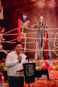 En el marco del Festival Xantolo en tu Ciudad, impulsado y promovido por el Gobierno del apoyo, el Gobernador de San Luis Potosí Ricardo Gallardo Cardona, inauguró este miércoles para el disfrute de las y los potosinos y turistas nacionales e internacionales, el altar de muertos monumental en Palacio de Gobierno, que estará abierto al público de 9:00 a 21:00 horas de lunes a domingo, dedicado a la cultura luchistica de México y a sus personajes, máscaras, técnicos y rudos que dejaron huella en el ring y un legado digno de preservar.
