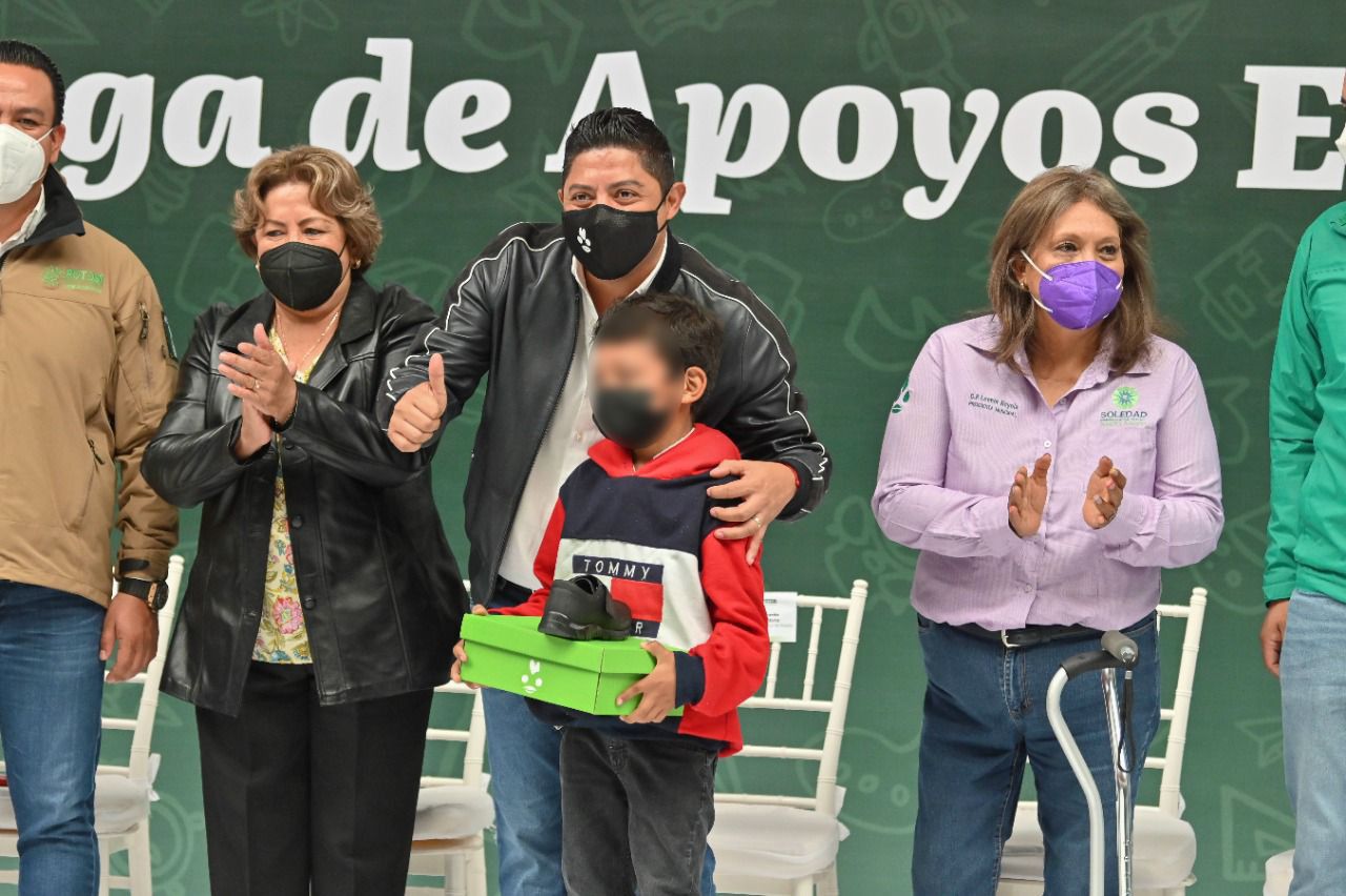 En seguimiento a los programas de apoyo social para las personas que más lo necesitan, el Gobernador del Estado, Ricardo Gallardo Cardona, entregó este viernes 20 mil paquetes de mochila y útiles escolares, y 15 mil pares de zapatos que beneficiarán a 35 mil estudiantes de primaria y secundaria del municipio de Soledad de Graciano Sánchez.