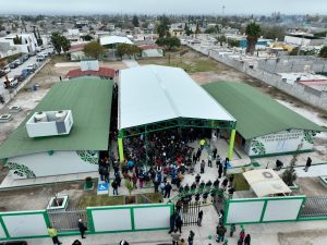 Matehuala, SLP.- Más de 300 alumnas y alumnos y las siguientes generaciones de dos planteles educativos en Matehuala cuentan con un nuevo techado en los patios cívicos, con los cuales podrán realizar sus actividades sin exponerse al sol o a la lluvia, gracias al apoyo que les brinda el Gobernador Ricardo Gallardo Cardona con más infraestructura educativa.