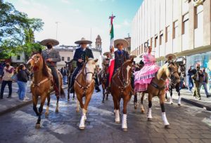 Escaramuzas de distintos municipios evocando a las y los protagonistas de la Revolución Mexicana, atletas de alto rendimiento, estudiantes de primaria, secundaria y bachillerato que nunca antes habían desfilado y que entusiastas presentaron diversas tablas gimnásticas, Bandas de Guerra cuyos toques militares resonaban por todo el Centro Histórico y hasta danzantes aztecas que dieron cuenta de nuestras raíces prehispánicas, avanzaron por la calle Venustiano Carranza hasta llegar a la Plaza en la calle Uresti donde culminó el recorrido.