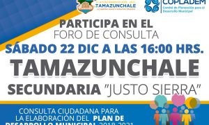Este viernes 21 de diciembre, se dio continuidad a los foros de consulta ciudadana, que contribuirán para la elaboración del plan de desarrollo municipal 2018 – 2021, contando en esta ocasión con la colaboración de los habitantes de la delegación de Tamán y comunidades aledañas.
