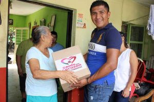 Ahí el Alcalde Gregorio Cruz Martínez en coordinación con la Presidenta del SMDIF entregaron apoyos alimentarios a las personas que se vieron afectados por las lluvias, de igual forma con el Coordinador de Desarrollo Social y el Secretario del Ayuntamiento se comprometieron a buscar una solución inmediata a esta problemática.