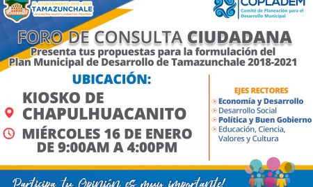 El H. Ayuntamiento de Tamazunchale, que preside el Arq. Juan Antonio Costa Medina, invita a la ciudadanía en general a participar con...
