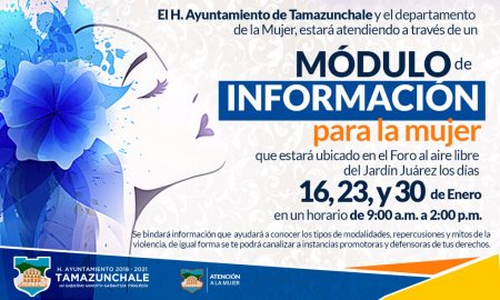 El H. Ayuntamiento de Tamazunchale y el departamento de Atención a la mujer, instalarán un módulo de información para la mujer, que...
