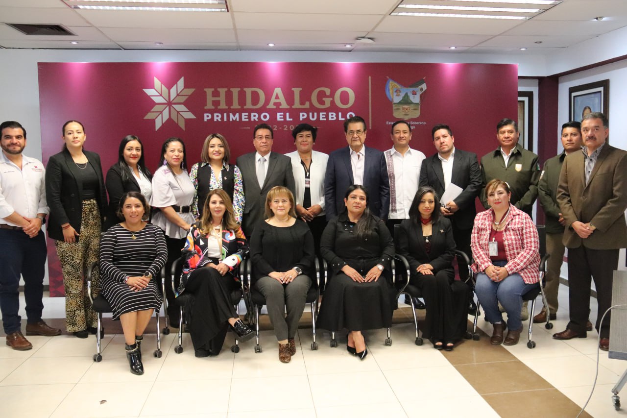 Pachuca de Soto, Hgo., 12 de febrero 2024.- El secretario de Gobierno, Guillermo Olivares Reyna, presidió la toma de protesta y presentación de los integrantes de la Comisión Interinstitucional Contra la Trata de Personas para el Estado de Hidalgo, con el objeto de coordinar y planear acciones tendientes a prevenir, atender, combatir y erradicar este delito, así como para garantizar la protección y atención a las víctimas.