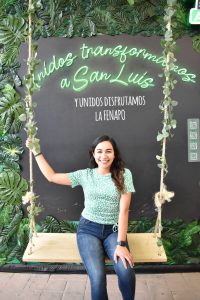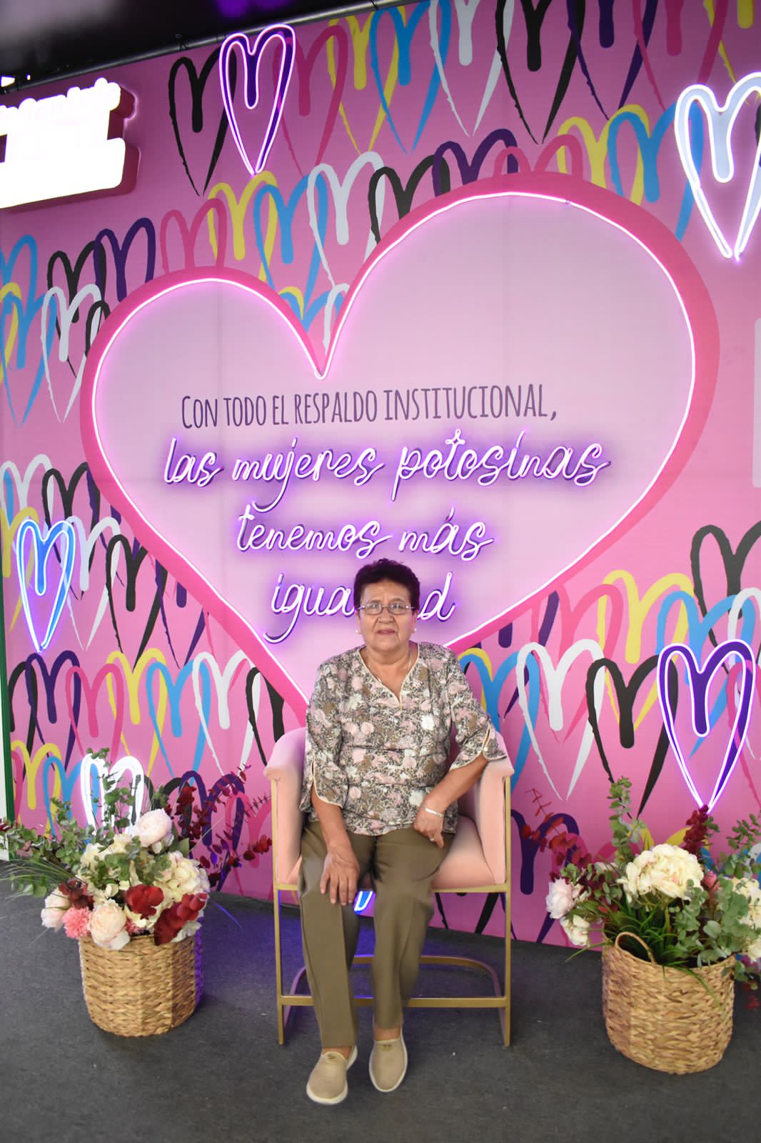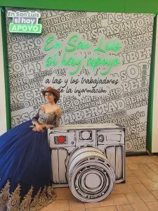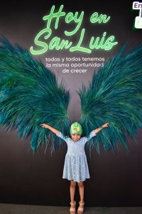 El stand se complementa con un columpio, unas alas, una silla con pared rosa y una cámara fotográfica de gran dimensión, en cada uno de estos espacios están inscritas frases alusivas al Gobierno del apoyo y la labor que realiza en la construcción del nuevo San Luis Potosí.